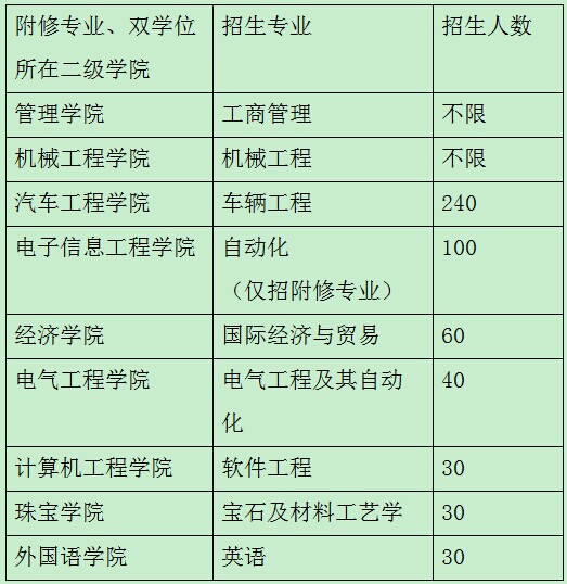 二、本学期各二级学院附修专业及双学士学位招生计划见下表: