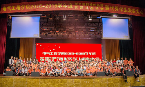 11月12日上午,电气工程学院2015-2016学年度“斯灵通科技创新奖”、“黄建林奖学金”暨优秀学生表彰大会于我校学生活动中心拉开序幕。