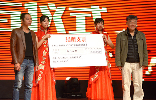 大会伊始,举行了“黄建林奖学金”支票赠与仪式,罗家辉先生代表黄建林先生将五万元奖学金支票赠与电气工程学院。