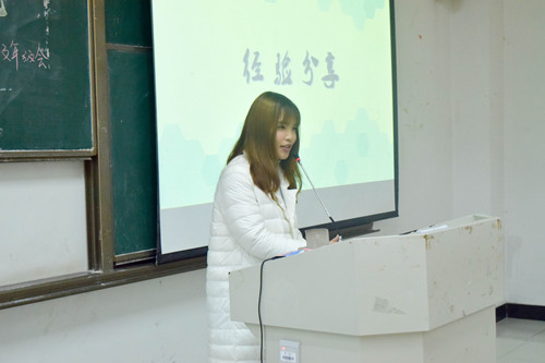 随后进行的是经验分享部分。首先,由谭颖怡师姐向同学们分享了自己进入大四以来的择业观念和求职经历。此外,还结合个人体会,对正处于大二的同学们给出建议:既要学好自己本专业知识,还要发挥好特长做好属于自己的职业规划。紧接着,是佘天博师兄分享的考研之路,他以“选择和态度”为关键词展开了话题,向在座的同学们讲述了自己从大学二年级到成功考取华南理工大学电力学院研究生这一路的坚持、改变和感悟,甚至详细到每个阶段学习计划的制定,也对同学们提出了认清自身,把握机会,并找准方向制定属于自身的发展计划。最后,他谦虚地说道,“我凭什么和985的学生去竞争?我想答案应该是:执着和坚持!”