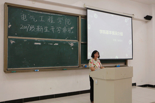 随后,电气工程学院配营教研室张冬梅老师发言,她热烈欢迎新同学的到来,并对他们的成长给予了几点期望:一是尽快适应大学环境,实现角色转换,重新再来、再接再厉,独立自主,自我约束;二是学习专业知识、掌握一技之长,具备综合发展能力、良好的人文素质;三是做好规划,兼顾效果与效率,抵制诱惑与干扰,投入学习与实践;四是自信、坚强地面对将会发生的一切。