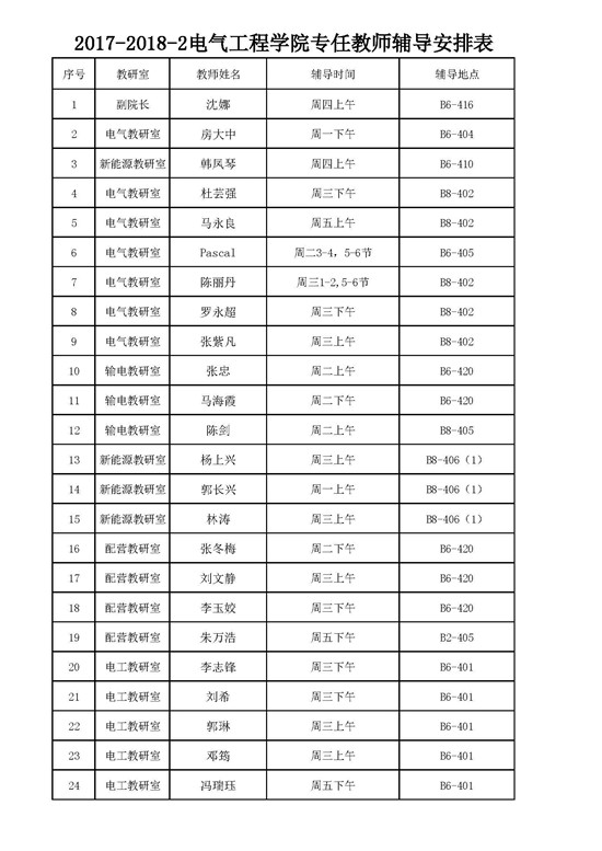 为提高教师教学能力,加强教师与学生之间的沟通交流,营造自由、民主、和谐的教学氛围,建立融洽的师生关系。根据学校的通知精神,安排每位教师每周有半天时间,给学生进行课程答疑。现将安排公示如下: