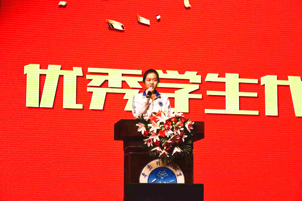 随后,电气工程学院2015级3班的连若意作为2017-2018学年优秀学生代表发言。她说到,荣誉充分肯定对自己努力奋斗的学习时光,也给自己未来求职生涯增添一份优势。在三年学习经历,她坚持严谨的学习态度,始终以饱满的热情投身于工作中,为成为全面发展的大学生努力奋斗。