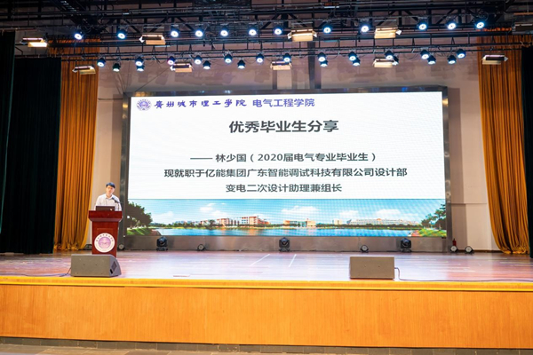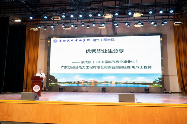 为了进一步统一思想,凝聚共识,引导2022届毕业生树立正确的就业观、择业观,推动毕业生高质量充分就业,10月18日下午,电气工程学院在学生活动中心举办院长“思政第一课”暨学院2022届毕业生就业创业动员会。学院院长赵杰、书记张郡、副院长沈娜;亿能集团广东智能调试科技有限公司董事长陈忠;2010届毕业生、广东欧姆龙电力工程有限公司综合部副经理梁成康;2020届毕业生、亿能集团广东智能调试科技有限公司设计部助理兼组长林少国;学院2022届毕业班辅导员、班导师参加会议。会议由张郡主持。