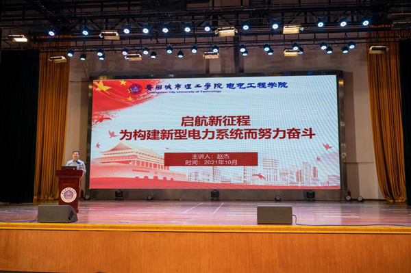 赵杰以“启航新征程,为构建新型电力系统而努力奋斗”为主题,为学院2022届333名毕业生讲授思政课。他首先结合习近平总书记“七一”重要讲话,指出讲话是一篇闪耀着马克思主义纲领性文献,是百年大党初心使命的新宣示、接续奋斗的新动员,是引领我们走好新的赶考之路,迈向中华民族伟大复兴的政治宣言和行动纲领。“党中央唱响了碳达峰、碳中和号角,构建以新能源为主体的新型电力系统这一伟大、艰巨的任务,落在我们新时代电力人的肩上,这是我们的荣幸。”