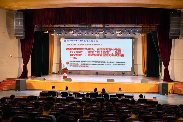 接着,他从“加强思想政治建设,在深学笃行中增强‘四个意识’,坚定‘四个自信’,做到‘两个维护’,勇做构建新型电力系统的奋斗者”、“深化理论武装,在深学笃行中自觉运用马克思主义根本立场、基本观点和科学方法,指导实践”、“实事求是,找准就业方向,找到适合自己的工作”、“戒除浮躁,从容工作,快乐生活,乐于奋斗,乐于奉献”四个方面为即将走上工作岗位的同学们提出了希望。“学院光伏项目正在规划实施,‘协调新能源的数字电网技术工程研究中心’获批建设,学院已在全国高校中率先进入构建新型电力系统新征程,积极稳妥助力国家迈向2030碳达峰、2060实现碳中和”。他建议同学们不仅要将毕业设计和毕业论文与企业工作紧密结合,还要把自己的职业生涯发展与构建新型电力系统有机结合,放眼长远,科学谋划,扬长避短,在实践中注重针对性深入学习、提升自己,同时也要创造性开展工作,潜下心来,钻研业务,充分发挥潜力潜能。“希望大家尽快找到适合自己的工作,并尽快进入角色、发挥作用,为构建新型电力系统作出应有的奉献!”
