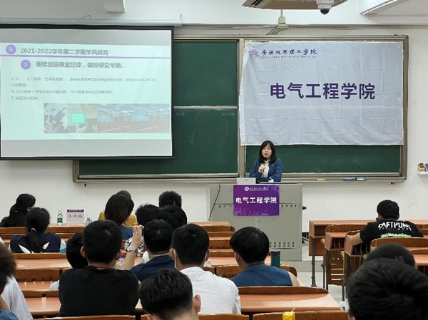 3月4日晚,广州城市理工学院电气工程学院2021-2022学年第二学期学生干部大会在A5-110召开。学院党总支书记张郡,全体辅导员以及各年级班长,团支书,心理委员/生活委员出席了本次大会。