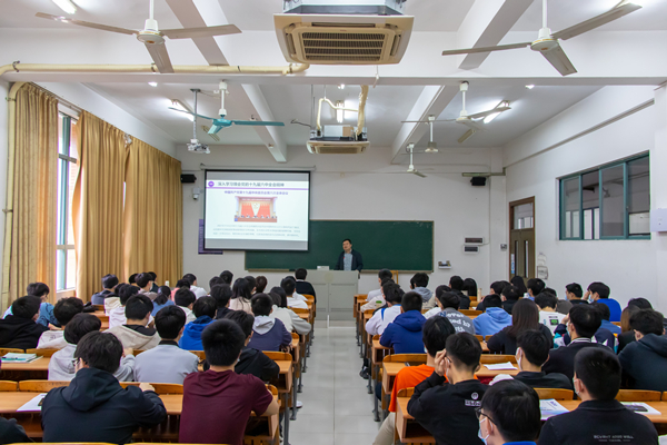 赵杰则从《关于若干历史问题的决议》、《关于建国以来党的若干历史问题的决议》、《中共中央关于党的百年奋斗重大成就和历史经验的决议》等三个党在不同的历史时期通过的决议为起点,以“以十九届六中全会精神为指引,学好专业课”为主题,着重讲述了十九届六中全会审议通过的《中共中央关于党的百年奋斗重大成就和历史经验的决议》的核心要义,回顾了党的发展历史,引导广大学生把个人理想追求深刻融入国家和民族事业之中,做有责任担当的新时代新人。