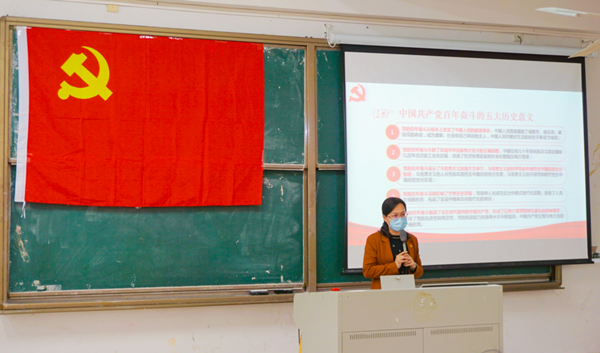 张郡为学院入党积极分子讲授思政第一课(揭卓 摄)