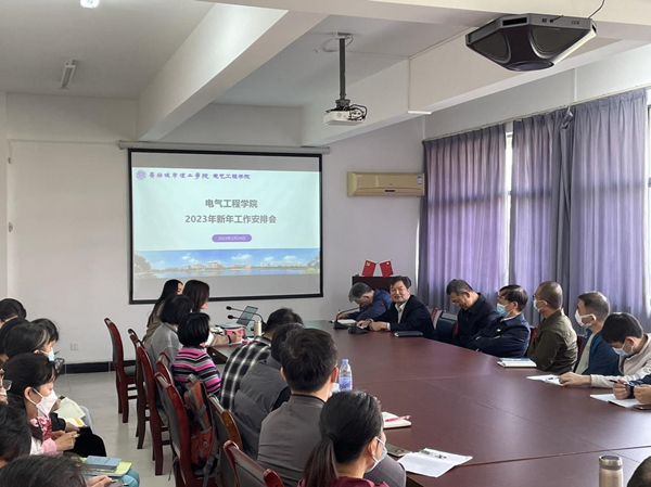 随后,沈娜副院长对学院本学期教学和科研工作、教师队伍建设、高层次人才引进、实验室平台建设、重大科研项目推进立项等工作做具体安排。沈娜指出学院要以电气工程及其自动化省级一流专业建设为引擎,推进专业教学改革,加强教师队伍、教学资源、实践平台等建设。大力推进新能源科学与工程微专业建设,聚焦新能源智能应用及新型配电网技术创新,建构“技术研发+成果转化+人才培养”的新模式。