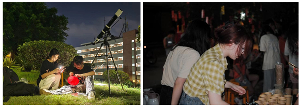 此外,学院还邀请到了茶艺社与天文社现场助阵,在茶香里感受“但愿人长久,千里共婵娟”的美好愿景,通过望远镜领略“却下水晶帘,玲珑望秋月”的意境,为游园会增添了几分情趣。