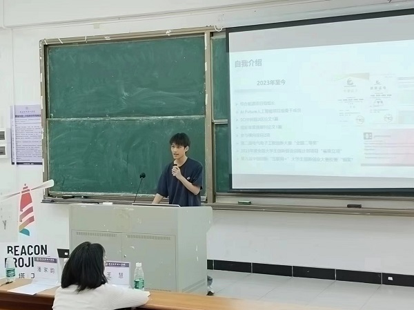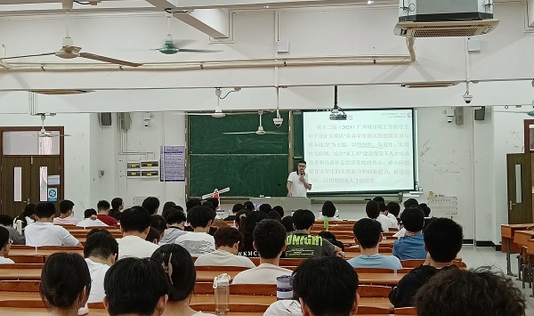 会议伊始,学院团委书记潘家韵进行创新创业及学科竞赛宣讲。潘家韵对“互联网+”“挑战杯”赛事中符合电气、新能源专业的赛道及其他具有学院专业特色的比赛都进行了详细的讲解,并介绍国家、学校对各类比赛的扶持及激励措施。她还提及专利与知识产权相关的内容,引导学生申请专利,保护科研成果。宣讲最后,潘家韵介绍了学院7个学生创新团队及其研究方向,鼓励学生积极加入科创团队,实现理论与实操的结合,提升技术创新能力。