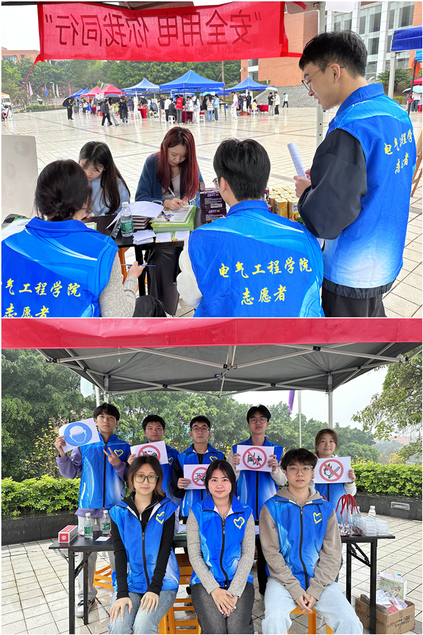 与此同时,以雷锋月为契机,我院团委社会实践部志愿者在学校学生志愿者服务中心的组织下参加了“雷锋月文化集市”摆摊活动,结合专业特色并以“安全用电,你我同行”为主题,开展了一系列安全用电宣讲活动,旨在提高同学们的安全用电意识,预防和减少安全事故的发生。本次活动设置了多个趣味问答游戏,主要宣传宿舍场景的安全用电知识,增强大家的安全用电意识。