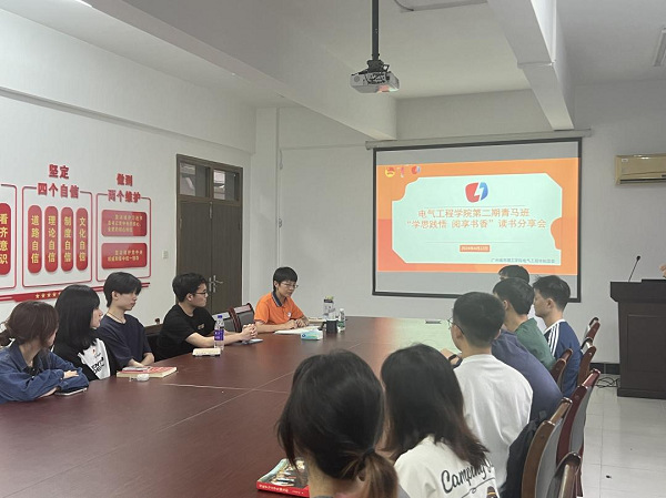 读书不仅可以开阔视野,提升知识水平,还可以培养同学们的情操,塑造良好的人格品质。据悉,第二期青马班“学思践悟 阅享书香”读书分享会是电气工程学院“博览群书 致电梦想”读书月系列活动之一。本次读书分享会不仅为青马班的同学提供了一个展示自我、阅读交流的平台,也有利于营造爱阅读、爱学习的良好学风。后续,为更好地引导同学们有效阅读,优秀读书笔记将会在“广城理电气团学”官方微信公众号上进行展示,同时鼓励青马班学员在分享会后进行“图书漂流”,相互借阅,养成良好的阅读习惯和思考习惯。