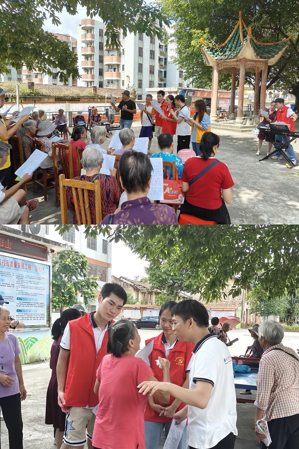 为加强老年人之间的沟通交流,丰富老年人的精神生活,7月10日,实践团前往望埠镇龙头山社区开展“乐享晚年,点燃夕阳”关爱老年人活动。实践团成员首先为老年人进行防电信诈骗宣传,随后带领全体老年人集体合唱红色经典歌曲《歌唱祖国》,让老年人在歌声中感受快乐。成员们还主动与老年人聊天,关心老年人身体状况和生活情况,深入了解老年人的需求。