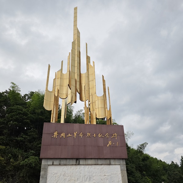 穿过纪念堂,实践团登顶来到井冈山革命烈士纪念碑,其高达27米,远看像一团火焰,寓意“星星之火,可以燎原”,近观如林立的钢枪,寓意“枪杆子里面出政权”。成员们仔细观察镌刻在纪念碑上的一组组生动的浮雕:“荟萃井冈”“红色割据”“浴血罗霄”“朱毛会师”、红四军与红五军会师的情境再次浮现在眼前。成员们感受着以毛泽东为代表的革命先辈在井冈山战斗中展现出的英勇气魄和顽强精神。