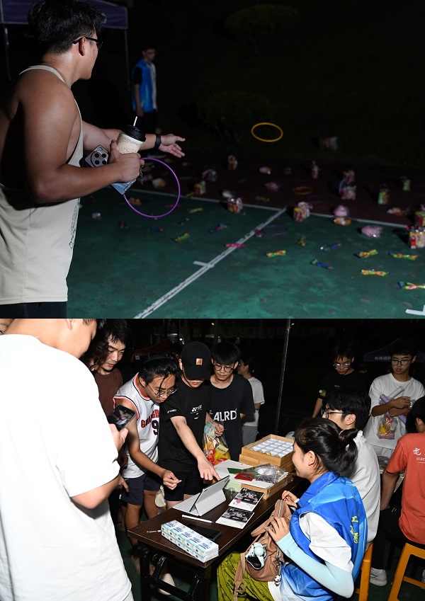 猜灯谜作为中秋活动的经典节目,自然成为同学们的“主战场”。参与者们或沉思或讨论,猜中谜底的喜悦之情溢于言表。套圈活动则以其简单而直接的乐趣成为了中秋游园会中最受欢迎的项目之一。圆圈在空中划过优美的弧线,向着心仪的奖品飞去。大家欢呼雀跃,庆祝每一次的精准抛掷。现场的氛围温馨而热烈,笑声、欢呼声此起彼伏,像是中秋夜最美的旋律。