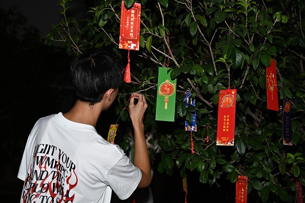 月色已至,树枝上挂着各式各样的灯谜,篮球场周围布置上了小巧喜人的灯笼,营造出浓厚的节日氛围。师生们在工作人员的引导下,兴致勃勃地参与了各项精心设计的游园活动。