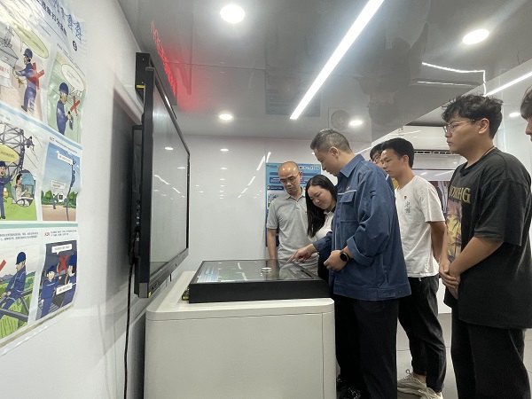 张翠杰介绍道,“移动式安全体验车是为工程施工作业人员提供安全技术教育体验,提高作业人员安全技能、安全意识的一种新型培训方式。南电技术公司打破固有的传统安全培训模式,以数字化技术为手段,构建了智慧监督、智慧培训、智慧考评的体系,将会给师生带来一种全新的学习体验。”现场工作人员通过场景模拟平台以及AR技术,结合现实案例,为师生们讲解了办公室、图书馆、实验室等师生活动场所的安全用电知识,展示了遇到触电、电气火灾等紧急情况时的正确应对措施。师生们还亲身体验了心肺复苏以及VR高空坠落等项目,对移动式安全体验车有了更为直观地了解。