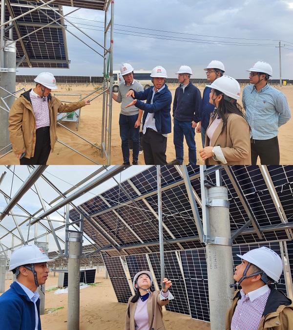 通过双方的交流和现场考察,学院教师了解到在沙漠这种极端恶劣的环境下,光伏组件在安装过程中研制出来的新器具、新流程、新方法,以及光伏电站清洗机器人在实际使用过程中存在的问题。经过这一系列深层次的考察,为学院新能源科学与工程专业光伏电站运行与维护的课程建设开拓了思路,在光伏电站清洗机器人研发及光伏支架结构优化等领域开展深入合作奠定了基础。