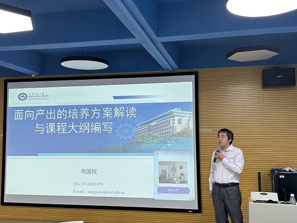 为体现以学生为中心、产出为导向、持续改进的人才培养理念,规范教学标准,保证教学质量,10月24日上午,电气工程学院邀请了OBE领域专家、华南理工大学副教授肖国权在B7-402开展面向产出的培养方案解读与课程大纲编写培训。电气工程学院副院长沈娜、部分教师代表参加了培训。
