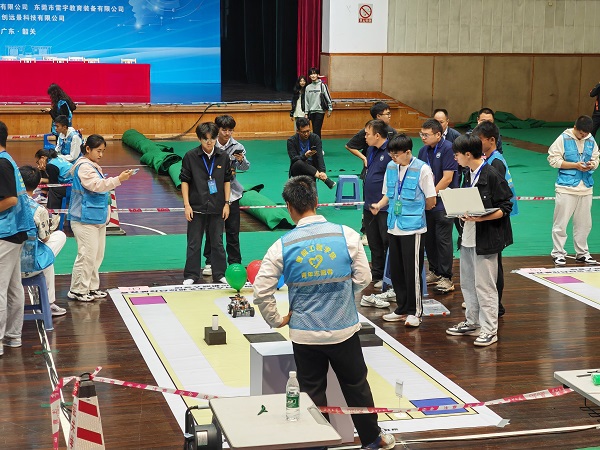 队员在越障救援机器人比赛中进行现场调试(吴佳欣 提供)