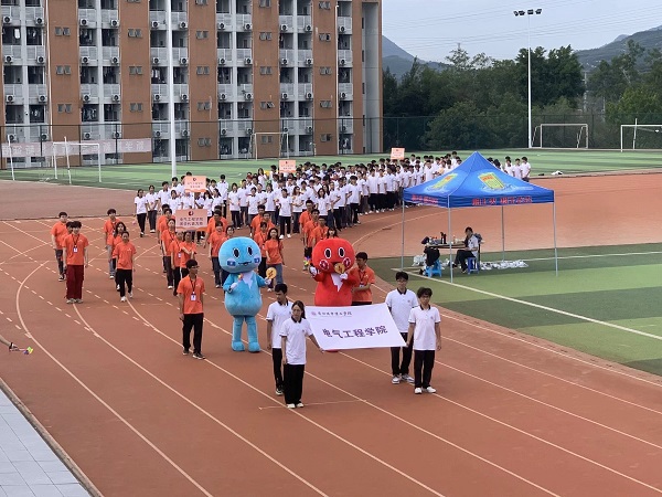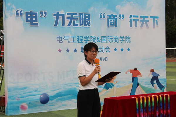 为丰富学生课余生活,提高学生身体素质,进一步弘扬体育精神、加强体育教育,电气工程学院与国际商学院于11月9日在足球场联合举办了一场以“‘电’力无限,‘商'行天下”为主题的田径运动会。电气工程学院党总支副书记符红勋、国际商学院党总支副书记梁伟滔、两院辅导员和班主任出席了运动会开幕式。
