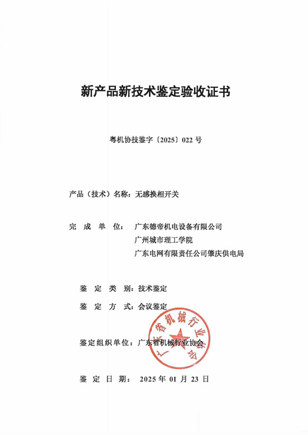 1月23日,由电气工程学院研发团队联合广东德帝机电设备有限公司研发的“无感换相开关”技术通过广东省机械行业协会的技术鉴定。这一成果标志着学院在电力系统智能化领域的研究与实践迈出了坚实的一步,彰显了我校在科技创新与产学研合作方面的实力。