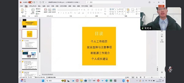 为推动学院2025届毕业生高质量就业,给予新能源科学与工程专业学生就业指导,3月12日晚,电气工程学院开展了新能源科学与工程专业线上就业分享会。电气工程学院副院长沈娜,相关专业毕业班班主任和毕业班同学参加会议。会议邀请两位优秀校友做线上分享。