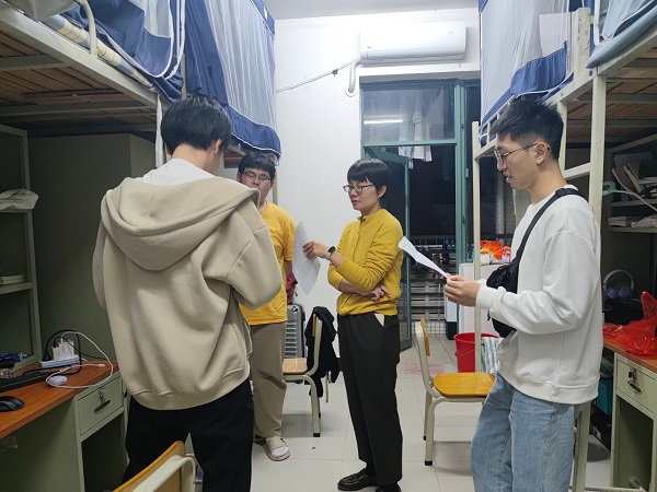 据悉,在宿舍文化节开展期间,符红勋联合辅导员和班主任走访宿舍,了解学生日常动态、学习状况、防诈骗知识等,增强了与学生之间的沟通交流。