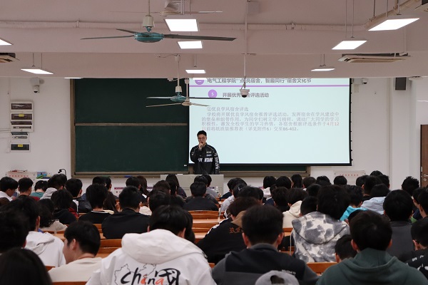 最后,符红勋作总结发言。她指出,宿舍生活是大学生活中不可或缺的重要组成部分。宿舍不仅是休息和学习的场所,更是社交、成长和塑造品质的重要空间。希望全体同学养成良好的卫生习惯,珍惜舍友间的情谊,共同营造美好和谐的宿舍环境。此外,她希望同学们重视心理健康问题,鼓励同学们通过宿舍打扫、运动、社交等方式进行自我心理疏导,同时倡导同学之间相互关心、温暖彼此,共同应对压力。希望同学们可以做自己时间的主人,摆脱手机的束缚,通过参与活动、竞赛、阅读和运动等形式丰富自己的校园生活,提高综合素质,为未来发展打下基础。
