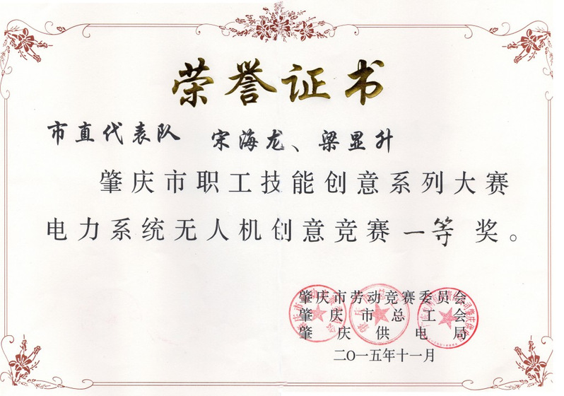 作为肇庆供电局的首位无人机操作飞手、带头人与肇庆局生产技术部大修技改专责,宋海龙在生产运维中,深入钻研科技增效,大胆创新,积极推广使用“多旋翼无人机”技术,和输电运维进行结合电网首创“人巡+机巡”线路运维模式,本着经济、实用、先进、可靠的原则,坚持向科技要效率,向科技要安全,向科技要降本的思想,提高认识,抓住重点,带领输电管理所全体成员广泛采用无人机技术替代传统的人力巡维,相比传统巡视效率提升数十倍。以“科学技术是第一生产力”为出发点,在肇庆局全面推广应用无人机技术过程中组织强大的技术攻关小组,落实责任,抓住关键环节优化输电线路巡视作业方法,培养无人机“精英飞手”,以点带面在两年内实现肇庆供电局无人机巡视全覆盖。密切与设计、监理和建设单位配合,开展新建电力线路无人机验收,结合多年来的设备巡维经验和现场实际情况,使无人机技术在山区输电线路巡维中的的推广应用取得了巨大的成功,成效显著,在肇庆局输电专业实现全面推广应用后,还实现向配网全面推广应用的目标,获得网、省公司一致认可并在全省推广,所在广东电网无人机团队获得“南方电网集体一等功”。