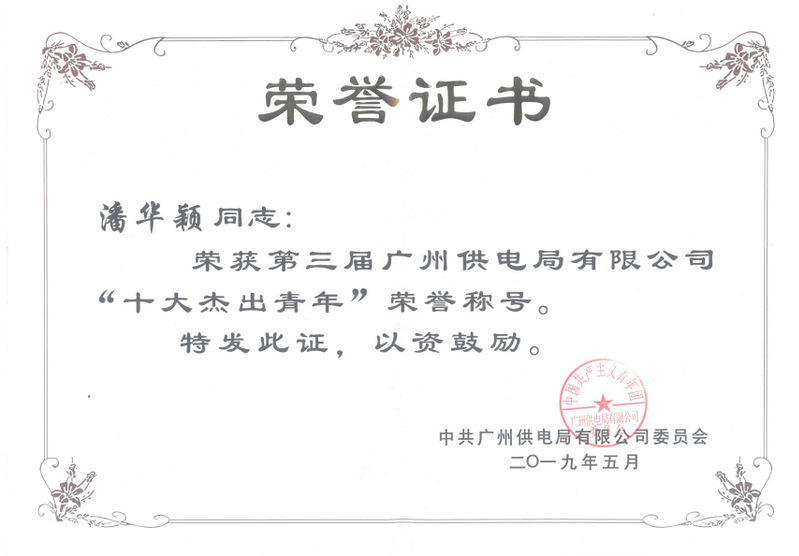 潘华颖,中共党员,华南理工大学广州汽车学院2010届电气工程及其自动化毕业生,工学学士,电力电气工程师,一级建造师,现任广州市电力工程有限公司综合部副总经理。