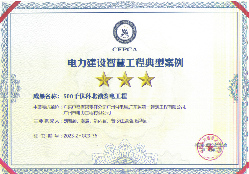 项目获得“电力建设智慧工程”典型案例荣誉(潘华颖 提供)