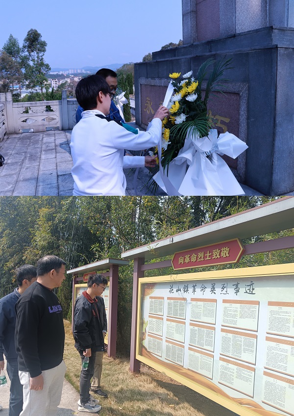 为缅怀革命先烈,弘扬爱国主义精神,4月1日,电气工程学院党总支与广州城北电力工程有限公司党总支(以下简称“城北公司”)赴花山镇烈士陵园联合开展“缅怀革命先烈,传承红色基因”主题党日活动。城北公司副总裁肖义祥、公司党员及团员代表,电气工程学院党总支副书记符红勋、教师与学生党员代表参加了此次活动。活动邀请花山镇退役军人服务站副主任赵超军作为分享嘉宾。