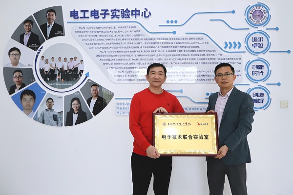 4月11日,“电子技术联合实验室”在我校B2-302正式挂牌成立。此实验室是电气工程学院电工电子实验中心与广州风标教育技术股份有限公司合作共建的实验基地。广州风标教育技术股份有限公司总经理梁树先,电工电子实验中心主任、专任教师等参与了挂牌仪式。
