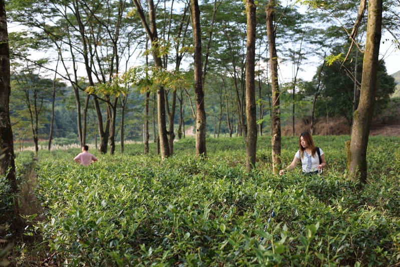 4日下午,实践团调研洛阳镇茶叶种植基地。据了解,该基地位于南岭国家自然保护区,森林覆盖率达96.7%,生态环境优良,海拔在650至700米间,常年云雾缭绕、湿度适中,为茶叶生长提供了理想条件,有助于提升茶叶的品质与香气。