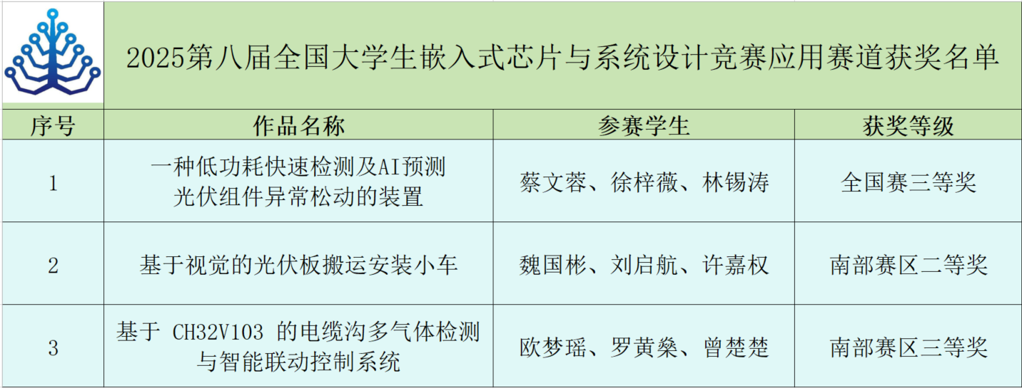8月13日,2025第八届全国大学生嵌入式芯片与系统设计竞赛应用赛道全国总决赛圆满结束。本次比赛中,我校学子与东南大学、武汉大学、南京大学、华南理工大学等多所高校学子同台竞技,获全国三等奖一项、南部赛区二等奖一项、南部赛区三等奖一项。
