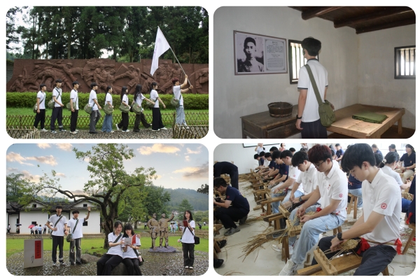 实践团参观红色旧址、体验编草鞋(潘佳良 摄)
