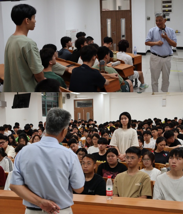 互动环节,新生们踊跃提问。同学们的问题既有关乎专业学习的困惑,也有对行业未来发展趋势的好奇。张尧对每一个问题都给予了解答,他嘱咐同学们,“万丈高楼平地起,无论技术如何演进,扎实的基础知识永远是未来深入学习和从事任何领域工作的根本。”他鼓励大家要珍惜大学时光,刻苦学好数学、物理、电路等专业基础课程,培养科学的思维方法和解决复杂工程问题的能力,为未来的学术深造和职业发展打下牢固的根基。
