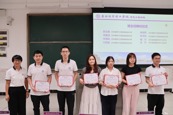 典礼最后,符红勋为新生班主任颁发聘书。本次开学典礼暨“思政第一课”是电气工程学院2025级新生入学教育系列活动之一。接下来,学院将开展校情校史、学校章程、校园安全等主题入学教育,助力新生快速适应大学生活,树立积极的人生观与价值观,为未来的学术与职业发展奠定坚实基础。